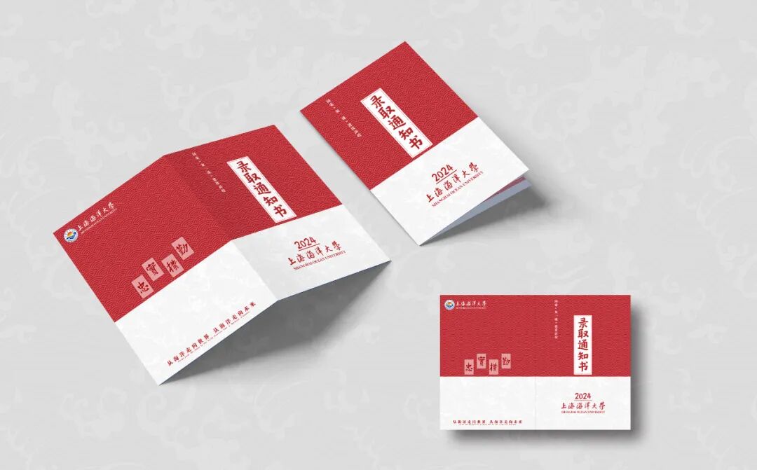 上海海洋大学录取通知书以红色为底色,传递着金榜题名的喜悦,波纹线条彰显着学校底蕴。录取通知书上印有校徽、校名、校训,引领学子们扬帆启航,从海洋走向世界,从海洋走向未来。