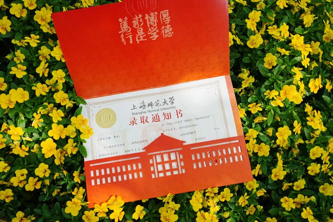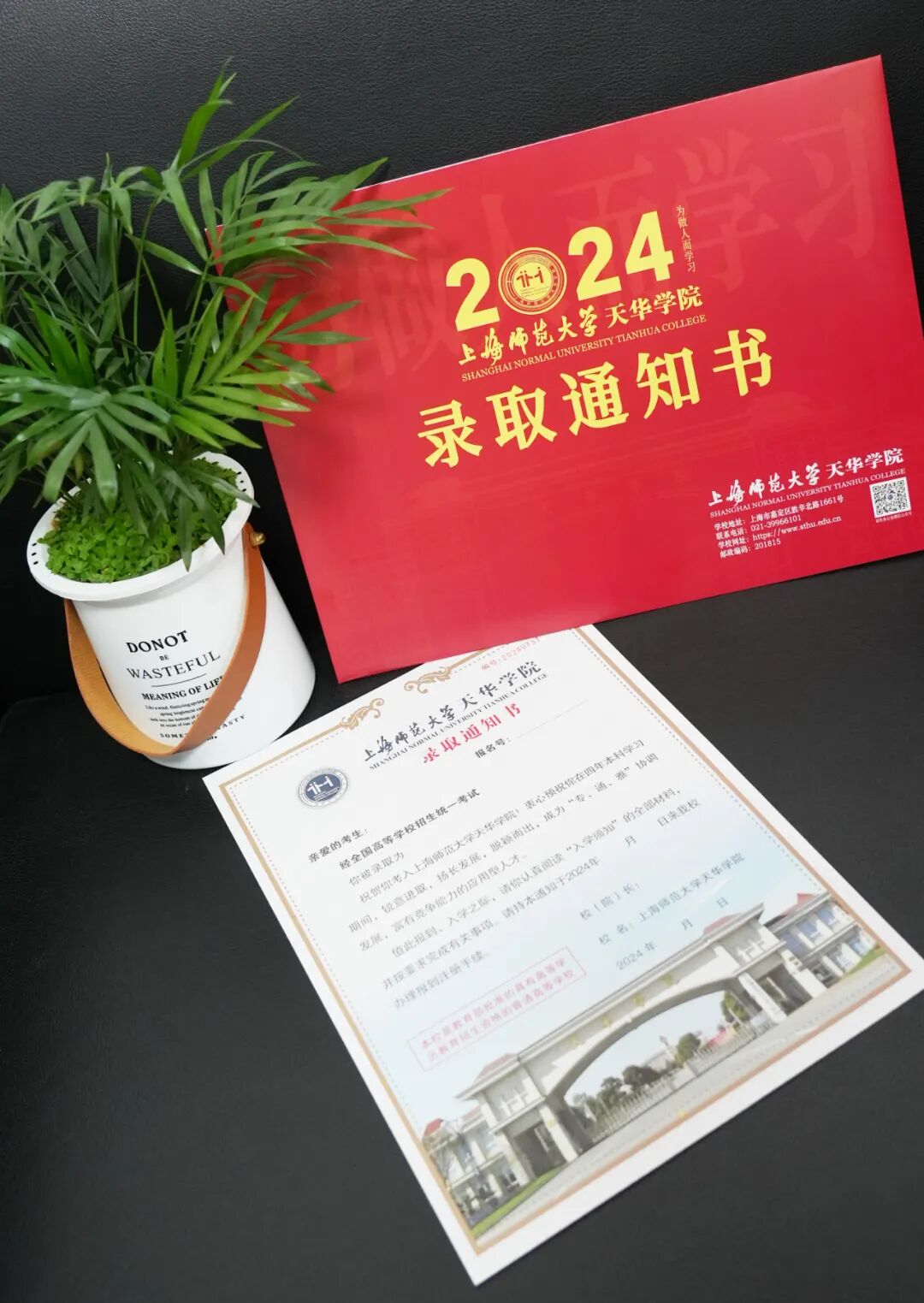 录取通知书设计以“为做人而学习” 为主题,佐以云纹的元素,寓意高考顺利,未来可期。表达了上海师范大学天华学院对2024年学子的祝贺与期许。