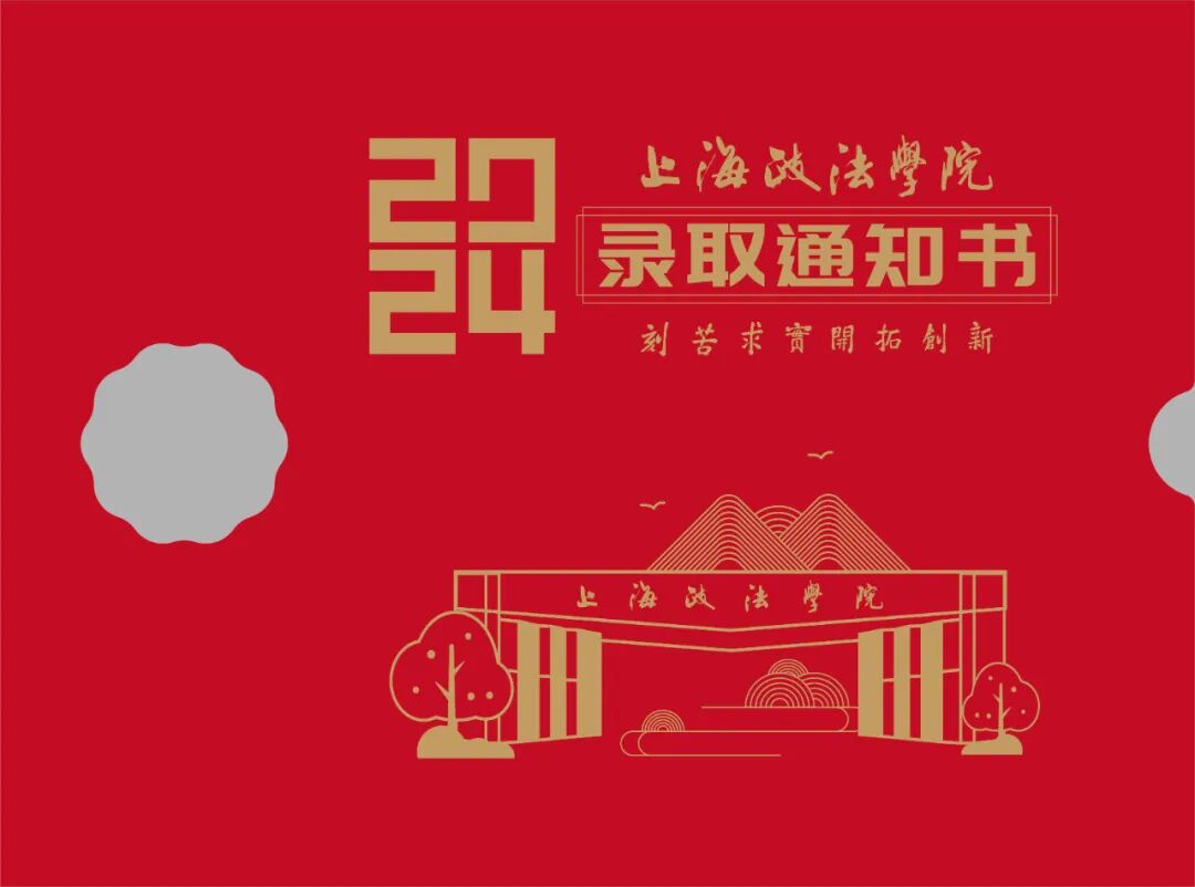 2024年上政录取通知书沿袭历年“上政红”主色调,喜庆庄重。采用镂空设计,花型中烫金logo熠熠生辉。封面为上海政法学院最新落成建筑成德楼的烫金剪影,简洁典雅,充满质感。通知书的整体采用抽拉形式。