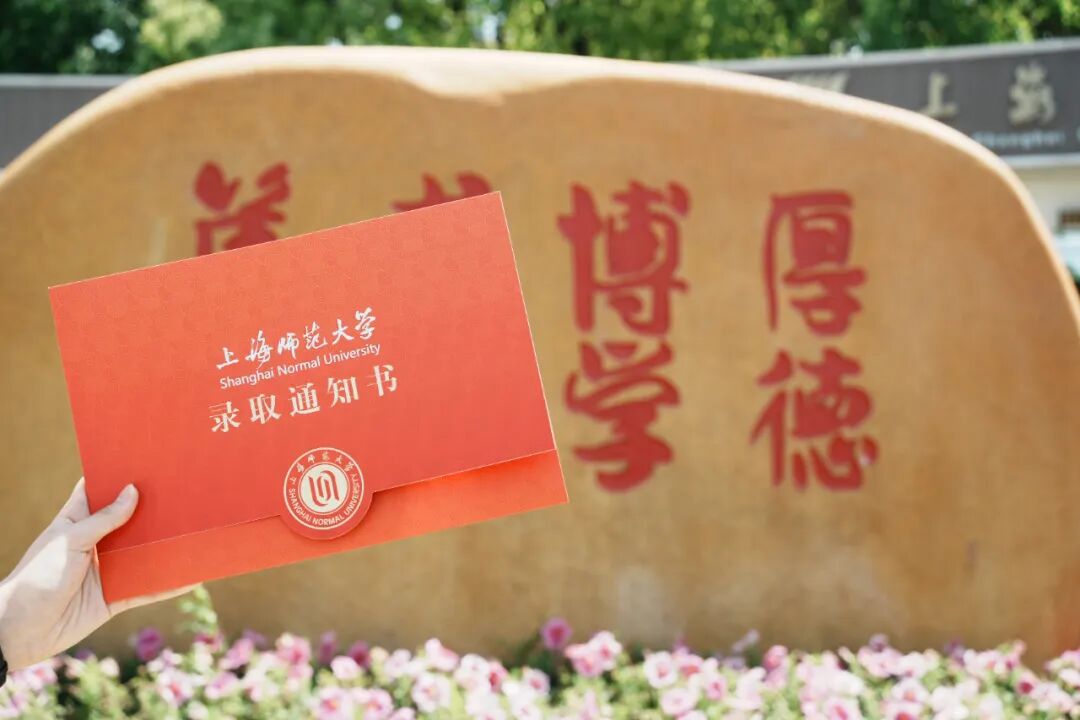 打开上海师范大学2024年新生录取通知书,内页上方映入眼帘的是校训“厚德、博学、求是、笃行”,下方象征着师道传承的雕塑,与历史最悠久的第一教学大楼交相辉映,尽显红楼隐翠间的师大魅力。