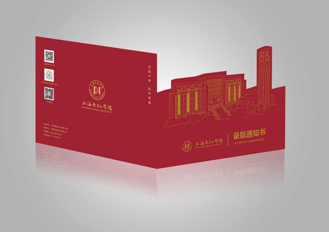 上应大2024年录取通知书,采用“封套+证书”的呈现方式。封套采用校庆红色调,以70周年校庆主视觉元素为主题,以奉贤校区中轴线标志性景观作为主设计元素,以徐汇校区优秀历史建筑的传统图式纹样点缀四方,展现上应大的历史根脉与深厚底蕴。以烫金工艺印刷,尽显热烈、隆重、大气,以扑面而来的喜庆氛围,热烈欢迎即将步入上应大校门的莘莘学子。封套内页印有校训“明德 明学 明事”,不仅阐释了学校的教育理念,也抒发了学校对每一位新上应学子的殷殷嘱托。