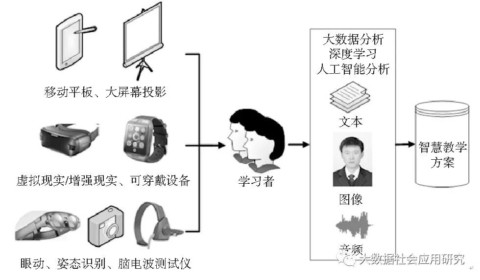 由于人的兴奋、紧张、愉悦等状态通过脸部表情、身体姿态和脑电波能够反映出来,因此对每位学习者脸部表情进行相应的历史对照分析,并结合脑波检测,便能较准确地识别出学习者的状态,分析出学生的注意力是否集中,以及对知识点的掌握程度。然而由于学习过程中的脸部表情、脑电波数据所呈现出的复杂、非线性、数据量大、干扰性大等特性,常用的数据分析方法识别效果不佳,而基于机器学习、深度学习的人工智能识别技术能有效处理上述特性,使得智慧课堂成为学习者进行个性化学习的重要场所。